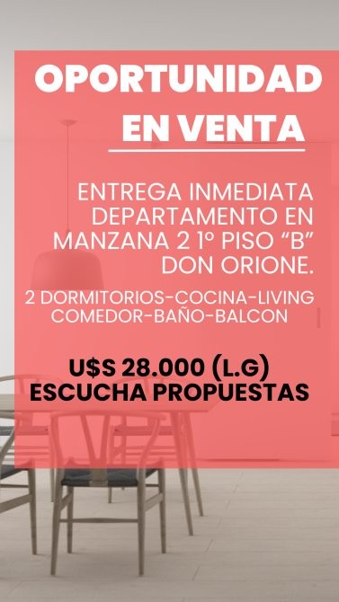 Oportunidad Depto Don Orione Manzana 2 1°B